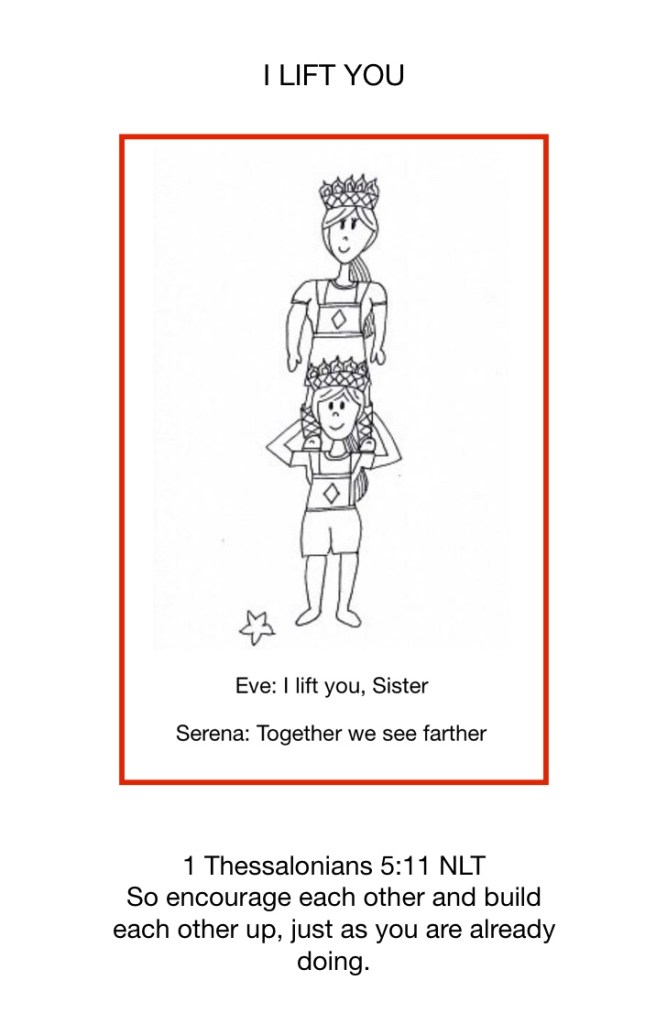 In my imagination, I see… Serena, a sassy little girl in overall shorts, a sky blue t-shirt, and combat boots. She has long skinny legs and knobby knees. She looks like she’s up to something with a delighted grin on her face. I see a lush green field, trees, and a rocky cave. Serena looks all around then pops inside the cave leaving a faint glow of light. Now I appear wearing overall shorts, a light pink t-shirt and no shoes. I scramble up a tree and pull a paperback out of my pocket. We hear, “Ready or not, here we come!” Two mighty beings enter the field wearing white pajamas with black belts tied in a knot at the waist. They are barefoot. I start to giggle and clap my hand over my mouth. I hear Serena holler, “You’re never gonna find me up in this tree!” Arrrrrgh! I’m so mad! I jump down out of the tree and rush into the cave. I tackle her and knock her over. I hold her down and tickle her until she cries, “Uncle!” We climb to our feet and walk out in a dignified manner. Serena looks to our angels and says sternly, “Go hide!” They walk silently away. My dear one looks back over his shoulder and winks at me.