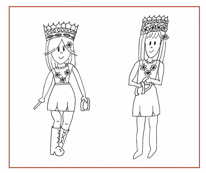 Our Lady puts her hand over her heart and says, “Thank you, girls.” After one final blast on our silver horns, we sit down to our research while being extra careful not to catch the books on fire. Our Lady picks up her adventure novel and settles comfortably back on her throne.
