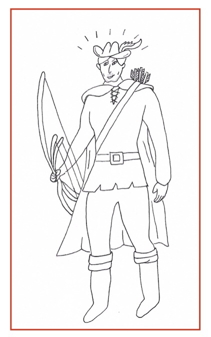 Eventually, our Lord Guide steps out from behind a tree dressed like Robin Hood with a quiver of arrows on his back. He has short blond hair under his green cap with a feather in it, a short blond mustache, and a short blonde beard. He is breathtakingly handsome. We love him so! And he’s not very mad at us! He’s holding a large bow and two smaller bows. Father lays his right hand across his barrel chest and greets him, “My heart.” Our Lord responds with a courtly bow, “My liege.” To us he says in a commanding voice, “Come, girls. Time for lessons.”