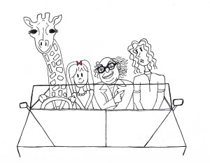 Snap. I’m crowded into the front seat of a convertible car speeding down a busy super highway in Pakistan. The traffic is backwards to me and the driver of our car is on the right. A giraffe is driving. I’m seated between the giraffe and Larry. A beautiful, tall, quiet woman with long black hair is on the other side of Larry. Larry is Danny Devito. He is laughing and hollering. I am smiling.